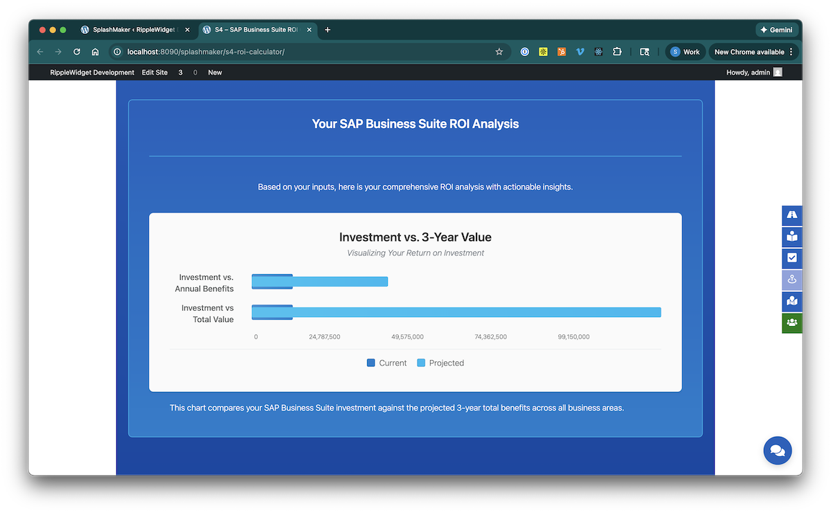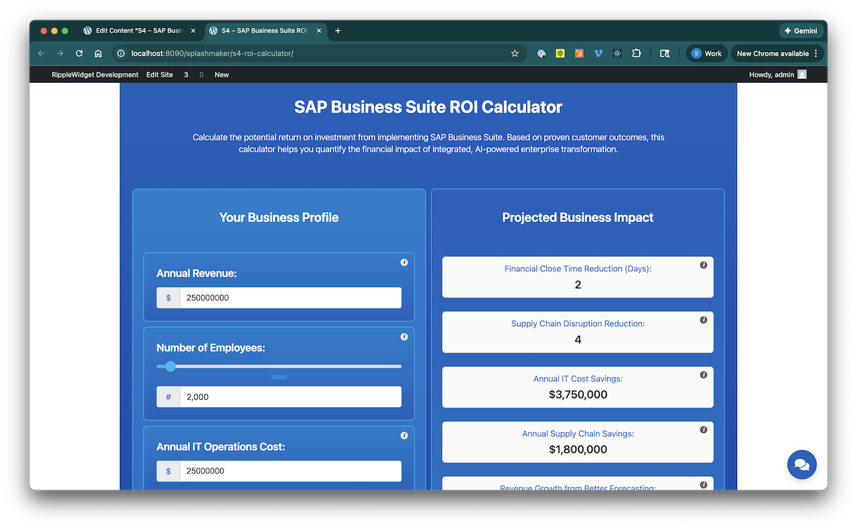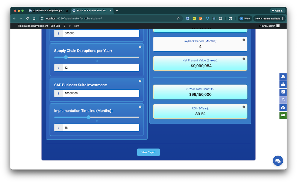 This is a sophisticated, fully-customizable calculator with the ability to add multiple inputs and realtime results. There are options for manual inputs, sliders, checkboxes, etc. And you have the ability to create formulas for any of the input and result items for complex calculations.