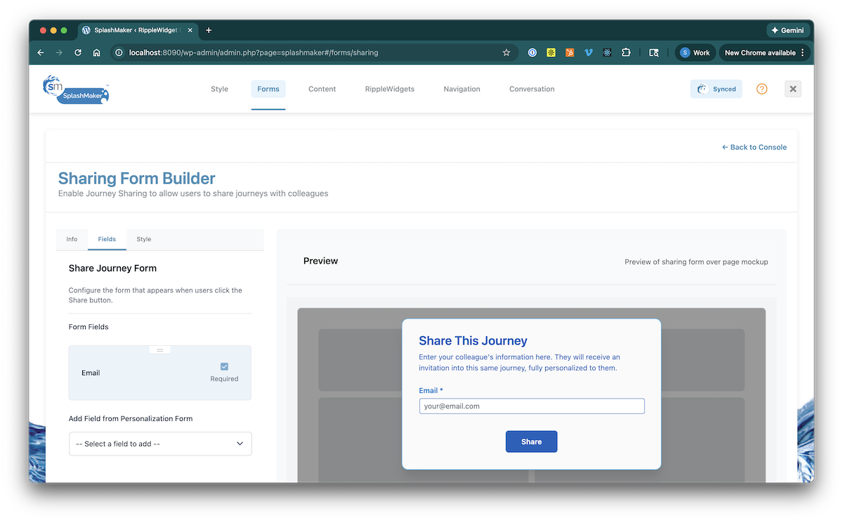 To add this functionality to the Journey Nav menu, just select Configure on the Sharing form and enable the form…