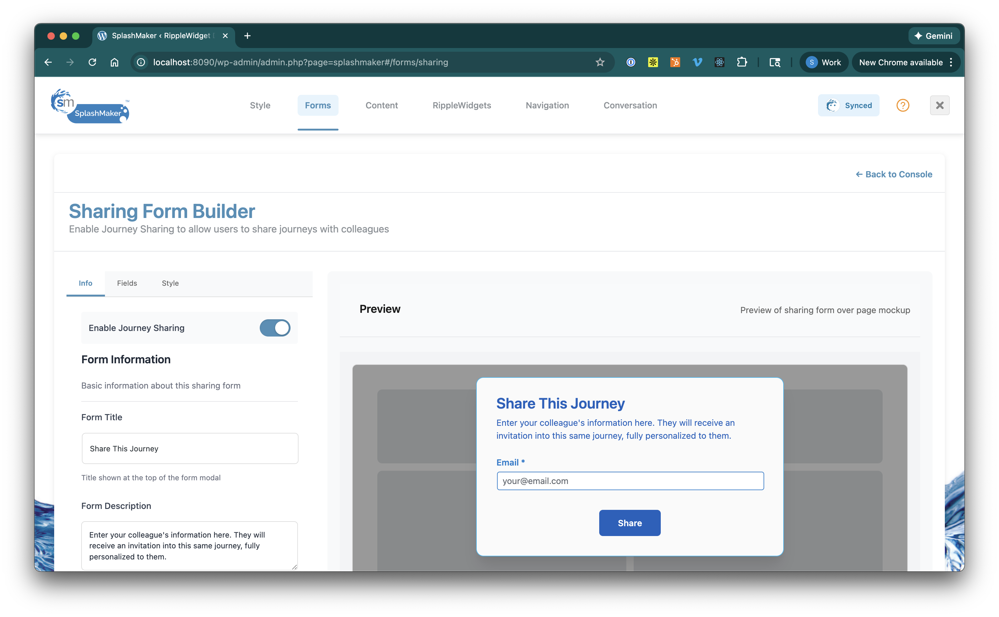 Enable Journey Sharing to get started. You’ll see the form itself and the same three tabs as the Personalization Form above…